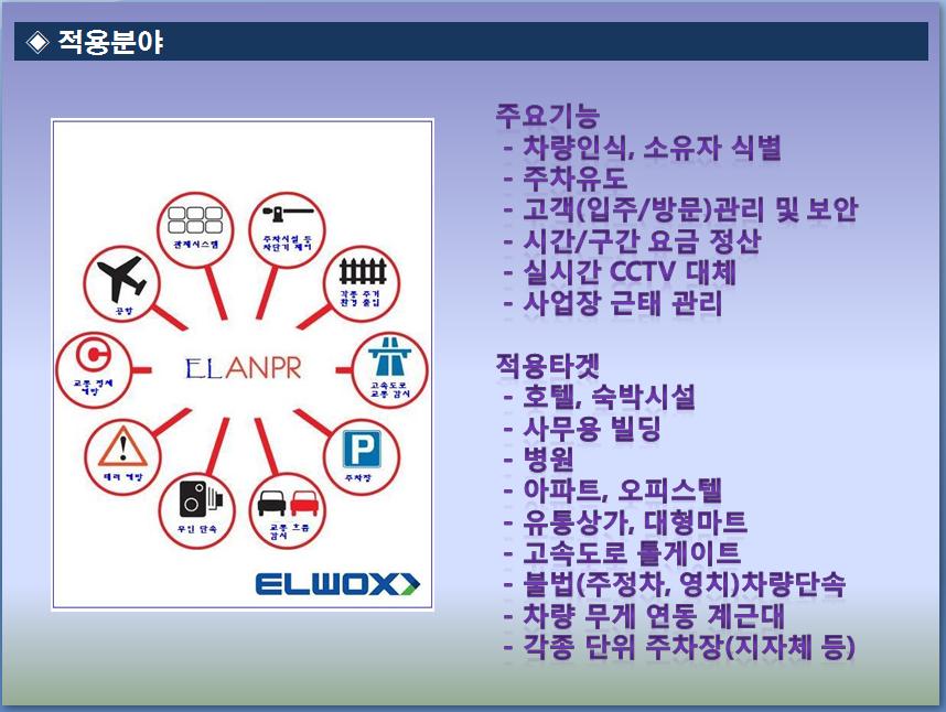 엘웍스의 차량번호인식 솔루션 제품군은