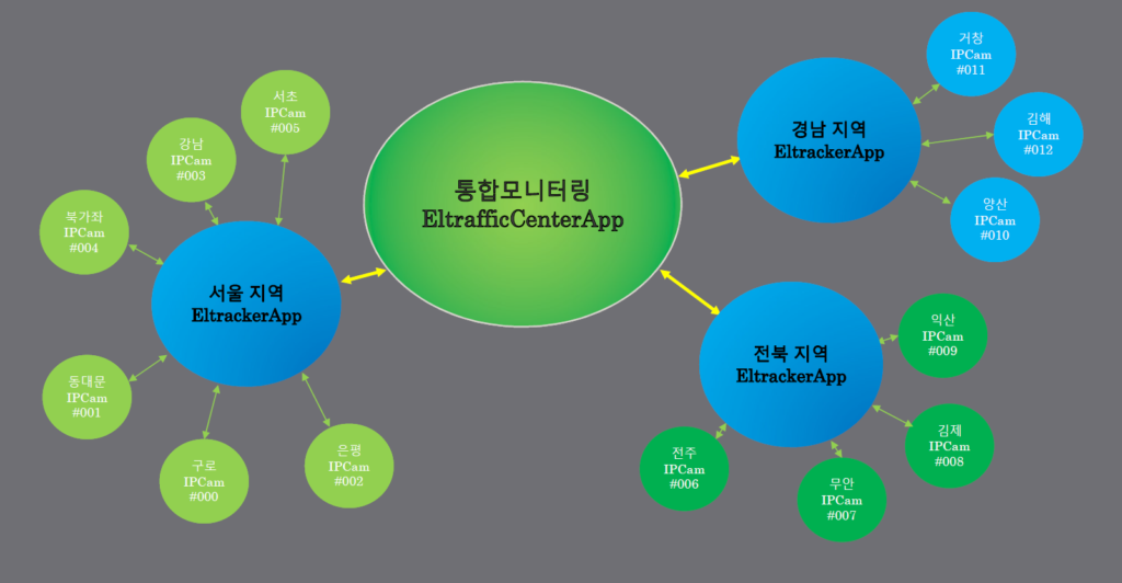 ◦ 하나의 EltrackerApp 을 통해 지역/세부지역 에 관계없이 최대 16채널 묶어 처리 가능